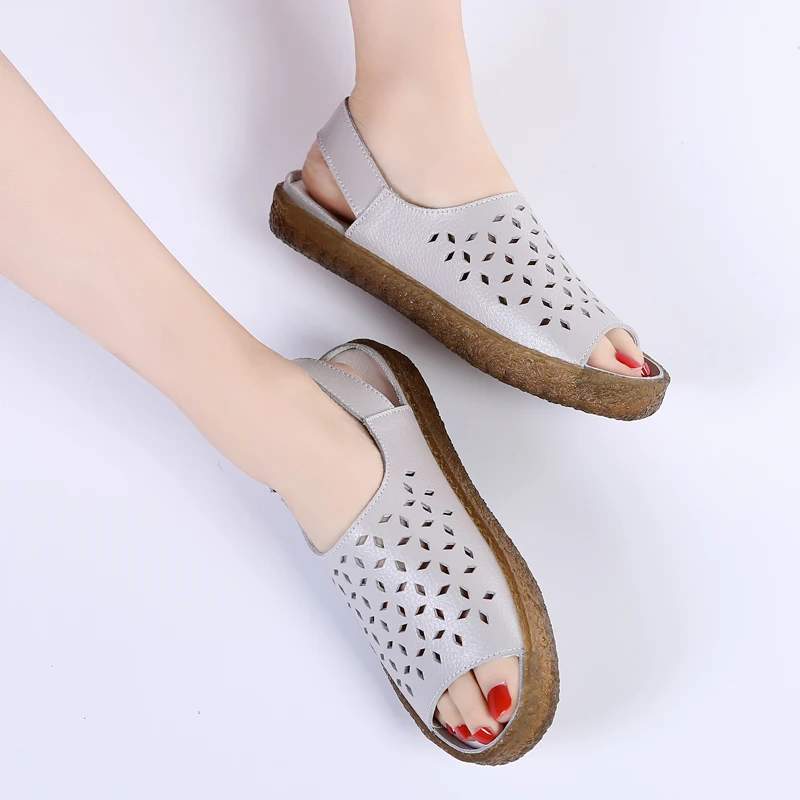 معرض من AARDIMI زائد حجم 35-43 أحذية الصيف جلد طبيعي النساء الصنادل المسطحة Sandalias موهير الإناث الوجه يتخبط زلة على حداء بدون كعب