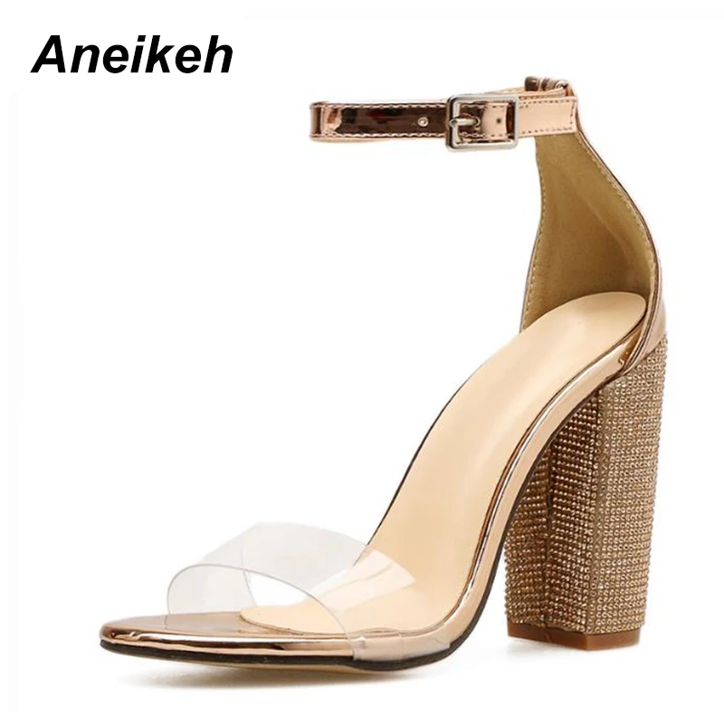 البحث عن معلوماتمعلومات اضافية Aneikeh النساء الصنادل 2018 الصيف جديد المرأة مضخات أحذية مثير عالية الكعب تأخذ مشبك مفتوحة اصبع القدم حجر الراين الخام مع الصنادل