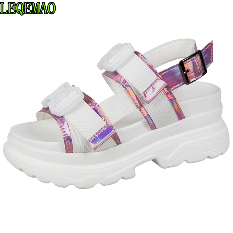 وانت enأرغب في شراء Sandals, pues 7 سنتيمتر صنادل أرضية الإناث إسفين عالية الكعب أحذية النساء هوك و حلقة جلد الصيف Zapatos موهير النساء الصنادل 2019 es posible ganar please