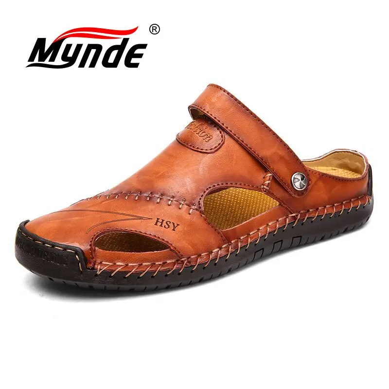 استعارات ل Mynde 2019 جديد الصيف الفرقة الرجال الصنادل الجلدية صنادل شاطئ في الهواء الطلق تنفس الرومانية شبشب رجالي أحذية ماء حجم كبير 39-48