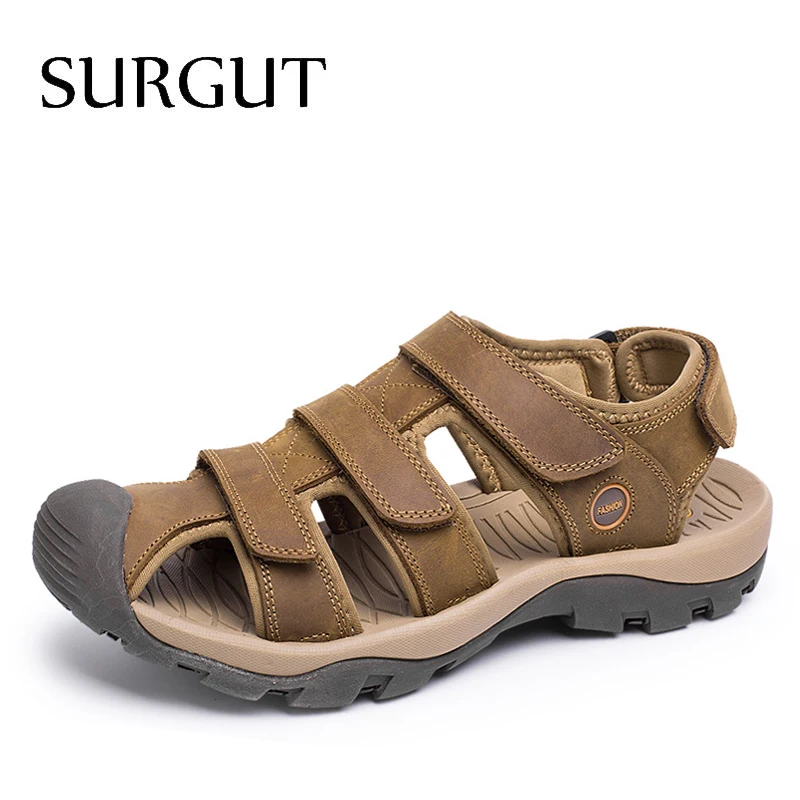 شراءمعلومات اضافية SURGUT العلامة التجارية الجديدة عالية الجودة الرجال جلد طبيعي الصنادل تنفس مريحة دافئ الصيف الأزياء والأحذية المسطحة الذكور الصنادل